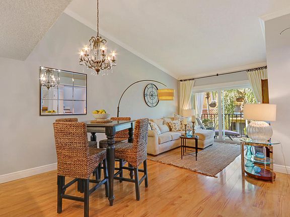 Darling 2 bed 2 bath completely remodeled unit with impact windows, wood floors, granite counter tops, and a one car garage just steps from the community pool overlooking the Intracoastal Waterway and Singer Island. Private back balcony, spacious storage closet under the stairs, and gorgeous master bathroom and closet off the master suite. Association includes cable with a 140 channels and On Demand.