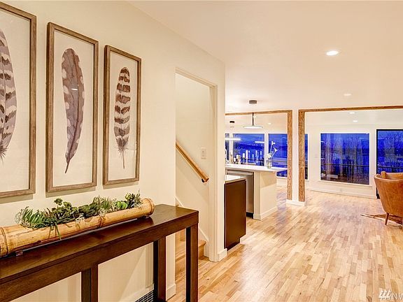 Enchanting lake, Cascade & Bellevue views from every floor! Arrive to a spacious/open main floor thru floor to ceiling glass entry to be instantly mesmerized by peaceful water views. New kitchen w/quartz counters, large island, Miele appliances, built-in coffee maker, & gas cooking. Main floor Ironwood deck w/over 600 sf of additional entertaining space. Upstairs: 2 bedrooms + guest bath & an impressive master w/best views in the home. 1,210 sf ADU in lower level with separate entrance & views.