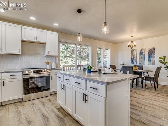 Nestled in the highly desirable Woodmoor subdivision, this beautifully remodeled home offers the perfect blend of modern elegance and serene mountain living. With 3 spacious bedrooms and 3 updated bathrooms, the home is thoughtfully designed for comfort and style. The heart of the home is the expansive open-concept kitchen and dining area—perfect for gatherings—featuring high-end finishes, ample natural light, and seamless flow into the inviting living room. A versatile nook in the living space offers the perfect setup for a home office or reading area, ideal for today’s flexible lifestyles. All three bedrooms are conveniently located on the upper level, including a truly impressive master suite with generous space, a walk-in closet, and stunning mountain views that create a peaceful retreat. The finished basement offers a bonus room—perfect for a media room, gym, or guest space. Sitting on nearly an acre, the property boasts a massive yard where deer and local wildlife are frequent visitors, adding to the tranquil, Colorado feel. Whether you're hosting summer barbecues or enjoying quiet mornings on the patio, this home is perfect for entertaining and enjoying the natural beauty that surrounds it.