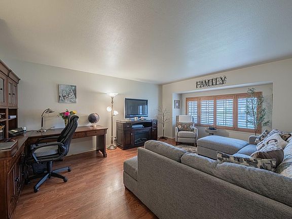 Welcome to MONTECITO ESTATES neighborhood! This beauty is a rare 4 bedroom 2 bath single story home that includes a large living room, dining room, open kitchen with granite countertops, and a separate family room with a cozy fireplace. There is laminate wood flooring throughout the living rm, and all 4 bedrooms for that added touch and sparkle. This home has been well maintained with a newer patio window that leads to the nice size backyard. Other added features include double pane windows throughout the home, a newer dishwasher, newer stove, plus a newer water heater. Oh, and did I mention this beauty has air conditioning and the backyard shed conveys! Another added touch is the family room that has a vaulted ceiling, that is perfect for entertaining or simply to just relax. Don't miss the opportunity to make this beautiful Harrod Built Home your own in this desirable neighborhood. Agent has not verified age,lot size, SF, or school district.