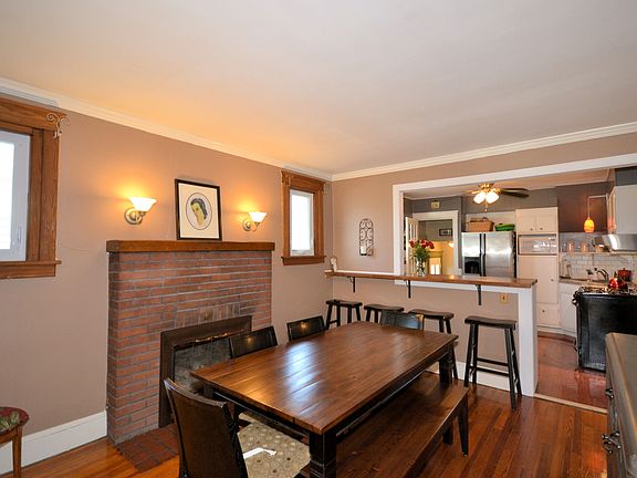 Nice single on a Quiet Tree lined boulevard wide street. Driveway access from private rear road. Sunny Enclosed Front Porch, Lovely Hardwood flooring throughout most of the home. Kitchen has updated Stainless/black appliances. Brick gas Fireplace in LR. 2nd flr Master BR has large walk-in attic for storage or maybe even possible Bath. Good closet space. Finished Lower Level with separate Laundry room. Plenty of room in Back yard for Deck and possible Garage.