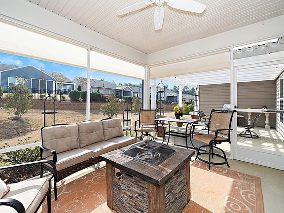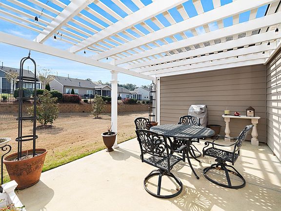 One-story gem nestled in the heart of a vibrant and luxury 55+ senior retirement community. It lives like a ranch - patio home with no stairs to climb! Easily handicap accessible. This gorgeous house is situated on a corner lot featuring a large, screened porch with floor length privacy shades, an 18x12 patio with a custom pergola and lighting. Perfect space for both entertaining and/or relaxing. The patio faces East and sunlight filters in all sides of the home. The layout of this home is a favorite with two spacious bedrooms and a flex room/office at the front of the house. The owner suite bathroom has separate sink vanity areas, a large shower and oversized closet. The kitchen has an abundance of cabinetry with underlighting, lower-level wood sliding pull-out drawers for added storage and two large drawers for pots and pans. Silent closing cabinets and drawers. Whirlpool appliances include a convection oven, microwave, and refrigerator. There is a double stainless-steel sink in the oversized island. Many upgrades throughout this beautiful home include custom valances, drapery, crown molding, wainscoting, recessed lighting, ceiling fans and luxury vinyl flooring. Indulge in resort-style living in this luxurious 55+ retirement community at Del Webb at Traditions near the heart of Wake Forest, NC. You will enjoy meeting fellow neighbors at the community clubhouse, featuring a heated pool, fitness center, tennis, pickleball, and bocce ball courts, as well as a game room. Professional photos and measurements are on order.
