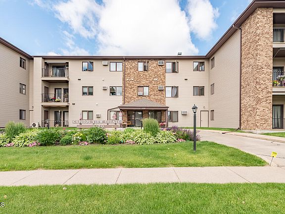 Check out this affordable 55+ condo located in a secure building in NE Bismarck. This 2nd floor condo features 1 bedroom, 1 full bathroom and spacious laundry room (washer and dryer are included). The kitchen, dining room and living room have an open floor plan. Off the living room is a balcony that overlooks the State Capital and has mature trees for extra shade. There is also a storage closest off the balcony. Updates include an newer dishwasher and 2 newer AC wall units. There is an underground heated garage with an assigned parking spot. The condo offers a huge community room with tables, chairs & a full kitchen. In the lobby has additional seating for visiting with family and friends. There is a guest suite is available to rent for your overnight guests. HOA handles snow removal, lawn care and building insurance. Call today to schedule a showing.
