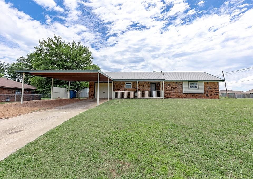 Big Bang for your Buck! Classic country charm w/ snazzy bells & whistles. Metal roof! Whole house generator! Inground storm shelter in full length covered back porch. Gated covered front porch! And that's just some of the outside! Wood & tile throughout. Cozy wood burning stove! Master has full bath w/ walk-in shower. Convenient corner lot w/ room for possible shop. Near to elem & middle schools. Only 2 mi from Kickapoo Turnpike. Be quick! You won't want to miss!