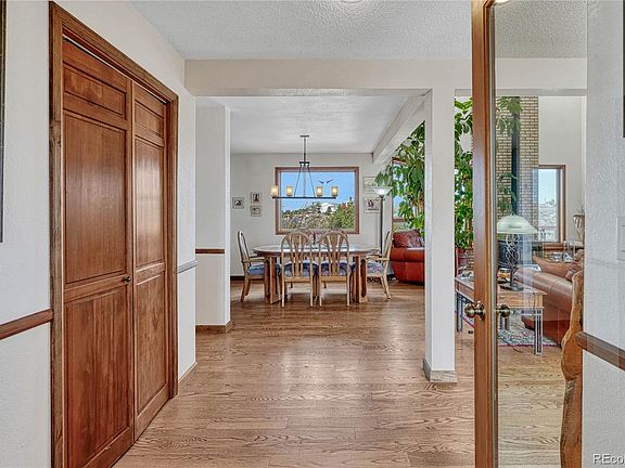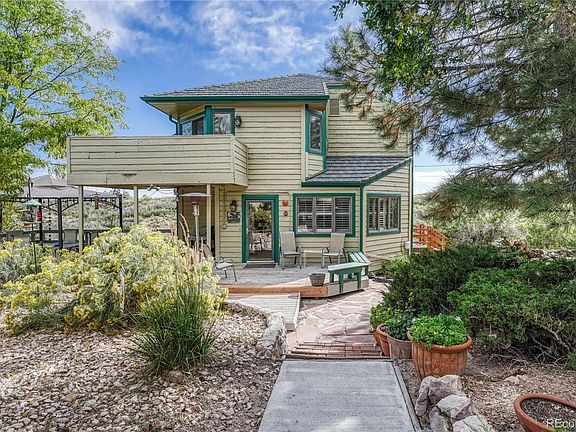 Don't miss out on this rare opportunity to own close to 4 acres, while being within minutes of Downtown Castle Rock. This 1980's custom home has 4 bedrooms, 4 bathrooms, stunning views, and a detached 4 car garage and plenty of room to expand! Located on the interior of a cul-de-sac, this home site offers much usable space, along with rolling acreage. The home and garage has stone coated steel roofing shingles for longevity and defense against Mother Nature. Owned solar panels and 2 Trombe walls add to its efficiency. Through the doors you are greeted with lovely wood floors that span through much of the common area. The dining area blends naturally into the Great room space and offers vaulted ceilings and amazing views. Here you can access a deck that allows you to overlook the ravine. The kitchen has plenty of room to design something spectacular with eat-in space and access to the side deck and patio. Laundry area is large and can have multiple uses. If you have a green thumb, you will enjoy growing beautiful plants in the atrium. A main floor bedroom/office and full bathroom finish this level. New Carpet starts the journey into the upstairs, where you will find 2 ample sized secondary bedrooms, a loft space that overlooks the main level and a recently updated bathroom. The primary suite has deck, 5 piece bathroom and walk-in closet. The basement offers plenty of storage, a large Family room and flex space that can be used as gym or gaming area. The Outdoors offers limitless possibilities! Septic, Well, Roof and Solar are in great working order! Opportunities to own a home on acreage like this, with the amenities of Castle Rock don't happen often!