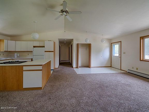 Minutes to Wasilla!This home needs some TLC and is waiting for a new owner! Built in 1995, situated in 1308 sq. ft., offering 3 bedrooms, 2 baths, open floor plan wall oven, countertop range, vaulted ceiling, newer carpeting. Master suite offers large bathroom with jetted tub and separate shower. All appliances included, 2 car garage with paved driveway, and chain link fenced back yard.(see more)