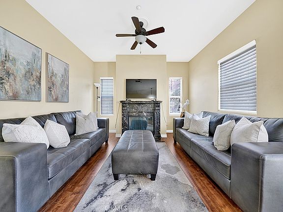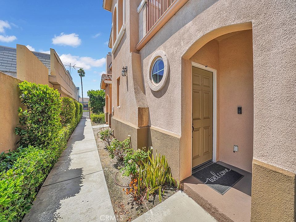 Nestled in the heart of vibrant city life, this very rare, end unit, single story home invites you to experience the epitome of modern living. No one is above you, below you, or on your left hand side. Built in 2006, this utterly gorgeous and highly upgraded home has granite countertops, stainless steel appliances, elegant laminate flooring throughout the house and remodeled bathrooms... even has a relaxing balcony of the living room. Beautiful kitchen has hardwood cabinetry, 1.5-year-old dishwasher, 1 year old microwave and garbage disposal and four burner Kenmore range... even has a side-by-side stainless steel refrigerator as well as three-seater breakfast bar. Formal dining room opening to a spacious and open living room with lighted ceiling fan and beautiful marble fireplace. Master bedroom is massive and master bath is totally upgraded with newer fixtures, dual sinks, granite countertops, medicine cabinet and shower over tub. Both bedrooms have mirrored wardrobe sliders, six panel doors throughout, dual pane vinyl windows, and rounded doorways! Hallway bath has granite counters, beautiful wood cabinetry, upgraded fixtures, a second " shower over tub", all with clean tile flooring. The master & hallway bath and kitchen cabinets have been updated in colors. One car attached garage with direct access with an oversized water heater and built-in storage racks. stay comfortable year-round with nice central AC and heater. Quiet and peaceful end unit in the back corner. Pride of ownership shows throughout the home. HOA has a beautiful pool in the center of the complex was built only 18 years ago. Hard to find newer condos with nice finishes in a nice neighborhood with low HOA dues. With Disneyland and Downtown Fullerton within a 10-minute drive and easy access to major freeways, this home offers a perfect blend of convenience and luxury living. A must see! Hurry up! Don't miss this exceptional opportunity to make this home yours.