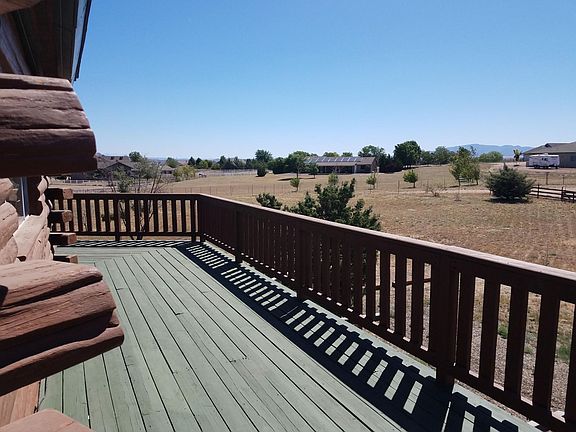 AVAILABLE 6/21!! Beautiful views from this custom two-story 2,078 square foot log home in Chino Valley. Upstairs features an expansive deck for enjoying the view. This level has the living room with hardwood floors and wood burning fireplace. The living room opens to the kitchen and dining area which features tile counters, a walk in pantry, and breakfast bar. There is also a master bedroom with dual closets, built in shelving and an en-suite full bathroom with dual vanity sink. Downstairs is a second living area with another wood burning stove, two guest bedrooms and a 3/4 guest bath. The exterior features a greenhouse, fruit trees on 1+ acre. Heating: Baseboard electric cove. Cooling: Two window AC units, evaporative cooler, and ceiling fans. Appliances include: Refrigerator, propane gas range/oven. MUST be able to maintain yard, including mowing grass. Utilities: Tenant Pays Electric - APS, Propane - Yavapai Bottle Gas, and Trash. Well 4.8 gpm. Property is on a conventional septic. Terms: No smoking. No college students. Minimum year lease, prefer longer. Renters insurance required. Move In Costs: Deposit is equivalent to one month's rent. Rent and/or prorated rent. Possible pets. Sorry no banned dog breeds or dogs with bite history. Pet rent of $50/month for the first pet and $25/month for each additional. Please fill out application before requesting a viewing of property. Renter pays electric, propane, and trash. Water and sewer is included.