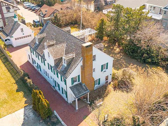 The James R. Tindle House is a key contributing property in the Cape May Historic District located in the beach block. This Colonial Revival-style home was completely renovated twenty years ago. Current owner has lovingly maintained this beautiful historic home. Enter into the grand living room with restored hardwood floors and a gas fireplace with a powder room conveniently located. The large formal dining room is perfect for entertaining friends and family. Spacious, modern chef's kitchen with Viking Stove and Sub-Zero Refrigerator. Kitchen has doors leading out to the spectacular screened-in side porch that runs the length of the house and overlooks the expansive side yard with pergola for outside enjoyment. Second floor features four bedrooms, one of which is currently being used as a sitting room with fireplace. There are also three bathrooms and a private, ocean-view porch. Third floor features two large bedrooms, hall bath, and a small office/den. The historic 1.5 story, 2-bay board and batten-clad garage with dovecote cupola on top offers a second floor for storage. This beautiful home is set off by a beautiful brick driveway and patio area in the rear. Do not miss this one! Call for appointment. This iconic example of Colonial Revival Architecture is featured in "Cape May Queen of the Seashore Resort" , "Summer City by the Sea" and "The First Resort".