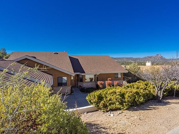 Great Location in Hidden Valley Ranch. Beautiful Views with open space for unobstructed Views of Thumb Butte, Wood floors, Natural Gas fireplace, Big windows to take in the beauty of Prescott. Formal Dining room, Lovely screened sun room that opens to peaceful lg deck. Enjoy the hummingbirds and native birds year around. Large kitchen with Island, could use updating. This home has great bones! 744 sq ft garage with built in storage. Ample sized laundry room ,mud room off the garage. Great storage in this home. Front bedroom is used as a crafting, sewing room. Double doors lead from the livingroom to a den/bedroom. Master has french doors that lead out to the deck. With 2300 sq ft on the main level, and approx 868 on the lower level, this home offers plenty of room for guests /famil