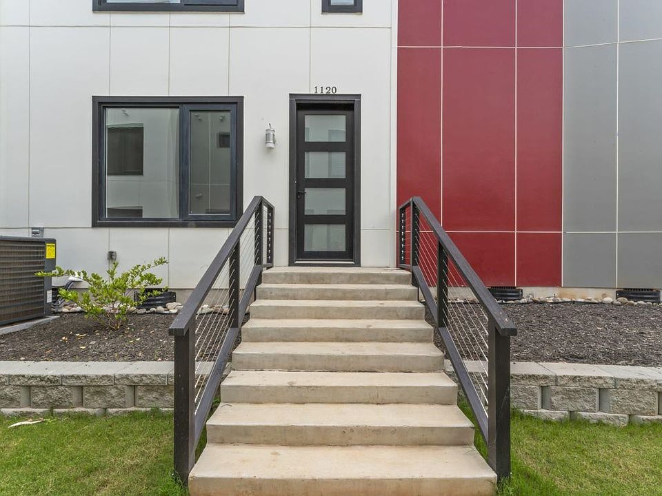 Stylish & Contemporary with modern finishes, including quartz countertops, brushed nickel plumbing fixtures, stainless steel appliances, stain-resistant flooring, and large windows! This tri-level home begins with the two-car garage, kitchen, dining room, and half bath. The second level has a spacious living room, laundry room, half bath, and primary suite with a walk-in closet, dual sink vanity, and shower/tub. Guests will love the two bedrooms, walk-in closets, full bath, and large rooftop deck upstairs!