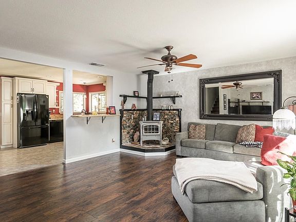 Beautiful Meadow Vista home at the end of a quiet country rd, close to town & just mins from I-80. This home has been remodeled w/a new roof, HVAC system, flooring, fully remodeled kit & baths, dual pane windows throughout, & new paint inside & out. Home has district metered water, & 1 inch NID irrg water, addt'l prking, storage sheds & fenced in grdn area. Previous 400+/- SF garage converted into 4th bdrm, w/sep entrance, lndry rm & storage. 2 car gar is connected w/breezeway & has wkshp area.