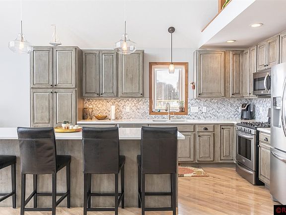 Come check out this beautiful home located just across the street from Madison Lake. This 2 story home offers all the sights, smells, and sunsets like a lake home would. The main floor consists of finished colored concrete that is heated throughout. The open floor plan allows for a nice sized family room and bar area for your entertainment needs. To finish off the main floor you will see the bedroom, full bathroom, and laundry room. The second floor stays consistent with the open feel that has the dining room, kitchen, and family room. All of which have the site lines of the lake. The two bedrooms on this floor share the 2nd full bathroom with tiled floors and shower. The third floor is where you will find the Master Bedroom. This room has a walk-in closet and beautiful full bathroom. Not only does this house have access to the lake but also has the luxury of sitting on over a half acre and has a 4 car garage for your storage needs. Come check out this wonderful home for yourself!