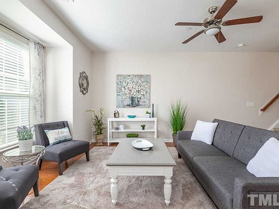Great townhome in popular Renaissance Park. Super convenient to downtown & NC State University. This lovely 3 story End Unit townhome has a spacious & private owners suite, 2 BR's on 2nd floor, plenty of closet space throughout & some of it's best features include Hardwood flooring in LR, DR & entry foyer; Kitchen w new granite countertops; stainless steel appliances; Box window in LR, open design & much more. Natural light pours into nearly every room. Set up a personal tour today!