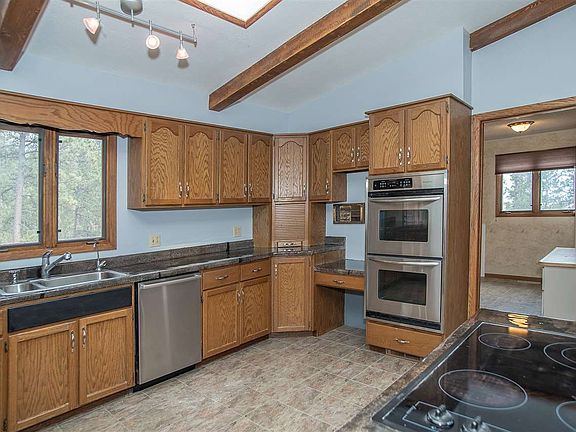 Too many features to list, this one has to be seen in person! This spacious 5 bed, 3 bath, 2 car garage home has been recently updated and sits on a breathtaking 2 acre lot. You are going to love the open layout, vaulted ceilings and the beautiful floor to ceiling fireplace in the living room. Walk down the hall to enjoy your master bedroom, complete with en-suite bathroom. This home also features main floor laundry! Access the stunning deck right off the main living space and enjoy peace and serenity over a cup of coffee! Downstairs you will find the huge family room, wet bar, and three more bedrooms(2 NTC-no windows)Need space for storage or projects? The over-sized two car garage lends itself nicely for either application. This home is also perfectly set up for horses, as it features a barn well suited for your animals, and has close access to Forest Service. Whether entertaining or simply enjoying all the space and views, this property has it all, and is only 5 miles from town!