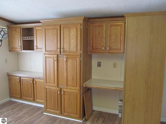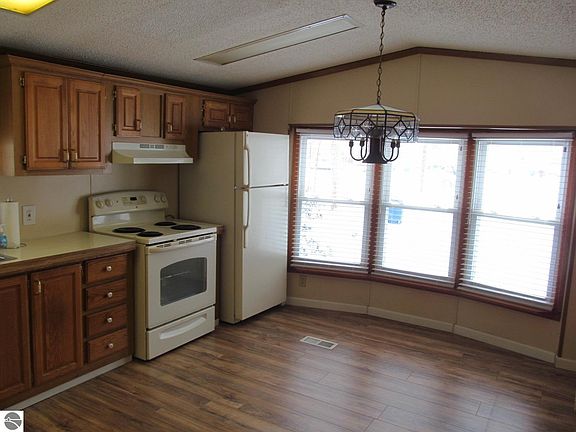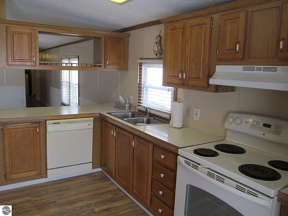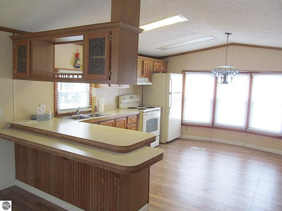 Very good condition, move-in ready, 2 bedroom singlewide home that has easy access to the Clam River Walkway behind the home! The 'newer' amenities include the furnace, washer & dryer, walk-in shower, and metal skirting! The kitchen is awesome, with plenty of cabinets, a pantry, a built-in desk area, snack-bar, stove, fridge, and dishwasher! You'll also enjoy the storage shed and large deck! Close to shopping, restaurants, and very short drive to downtown Cadillac with it's gorgeous city park, fun boutiques, and unique eateries, all sitting on fabulous Lake Cadillac!! NICE!