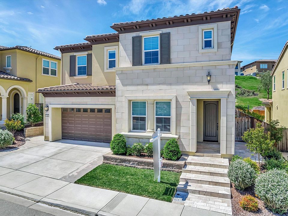 Located on a premium lot in the highly coveted Alita community of Gale Ranch, this luxury Toll Brothers East-facing home boasts breathtaking views of rolling hills & Mt. Diablo. Impressive floorplan perfected with upgrades of over $165K. This home offers 4 bedrooms, loft and 4.5 bathrooms with a first-floor bedroom & full bathroom. From the foyer, walk to the light filled great room adorned with a fireplace. The custom gourmet kitchen features a center island with breakfast bar, walk-in pantry, custom wood cabinetry, quartz counters & premium KitchenAid appliances. Adjacent to the kitchen, a regal dining room is ready for formal gatherings. Expansive master suite with a beautiful display of windows, large walk-in closet and a spa-like bathroom with extra-large shower with clear glass shower enclosure, dual vanities and a standalone tub. All bedrooms complete with a private bathroom. Other features include high ceilings, hand laid Italian ceramic tiles, 8’ interior doors, custom Hunter Douglas shades, dual zone AC & heating system, tankless water heater. Backyard with custom concrete patio & deck with arbor displaying wisteria vines. Prime location close to parks, golf course, shops&dining at the City Center + award winning San Ramon Valley schools.