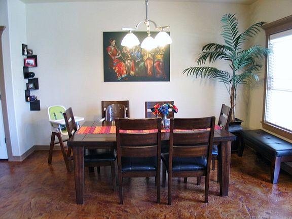 Here is the one! Built in 2010, this home is better than new! Super convenient location and stylish home with 10 ft. ceilings, stained concrete floors, wonderful windows with a view out onto the privacy-fenced backyard. Spacious area for dining table, open to living room. Granite counter tops in kitchen and bathrooms. Storm shelter in garage. Front and back patios. Westwood elementary. Total electric home.