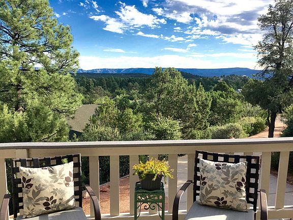 This choice family home provides Spectacular Views of the Mogollon Rim on 1.31 acres backing National Forest...great for walks & hiking. Spacious 4BDRM/3BA/2CG home offers 2944sf of tranquil living. Tongue & Groove wood vaulted ceiling extends from great room with gas fireplace into an eat-in kitchen. Master Bedroom and ample sized Second Bedroom on upper level both have walk-in closets. Laundry room includes the washer & dryer. Lower level includes spacious yet cozy family room with gas fireplace, two large bedrooms and bathroom. Extended two car garage, almost new tank-less water heater, fenced back and side yard for dog run and garden. Lightening rod protection, central heating and cooling, abundant storage and two expansive decks round out this immaculate private home.