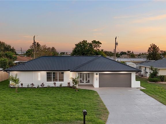 Welcome to 1120 SE 34th Street! | This 4 bedroom, 2 bathroom pool home is not your typical renovation - EVERYTHING has been touched and upgraded on this property. Brought back from block - enjoy an open-floor concept, split floor plan home that shines as good as any new construction house because it practically is! In an unbeatable location in Cape Coral - be close to it all and out of a flood zone, in an impeccable home. The walls have been moved, new trusses installed, drywall, electrical, plumbing, sod, irrigation, pool, and pool equipment - EVERYTHING is NEW. Impact Windows and Sliders have been installed giving peace of mind during storms. NEW metal roof installed, hurricane rated garage door, 6" 360-gutters, new A/C, the ducts, spray foam insulation (in walls and attic space) - absolute quality! The kitchen is gorgeous and features Manhattan styled cabinets, under-cabinet lighting, and a quartz waterfall island with farmhouse sink & pop-up USB-C outlet. Both bathrooms renovated and feature LED back-lit mirrors, new vanities, shower tile and fixtures. Tile Flooring throughout the home. Full list of features available! Hard to find homes this size, quality and price in this location - city water and sewer in & OUT of the flood zone. Schedule a showing and make this one yours today!