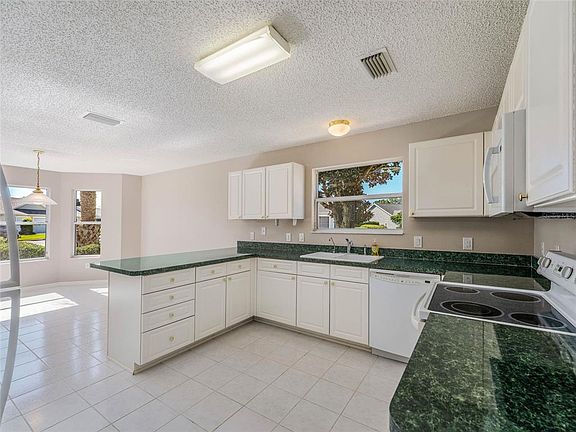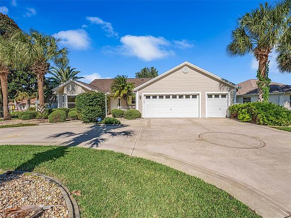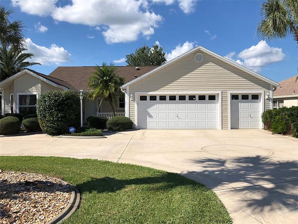 NO BOND, GOLF CART GARAGE, CIRCULAR DRIVE, CORNER LOT, and LOCATION, LOCATION, LOCATION, this SPACIOUS Designer home has been CUSTOMIZED. Located in the Village of Santo Domingo, this 2389 SF of living space is sure to please, with Three Bedrooms and Two full Bathrooms, high ceilings, spacious kitchen with large breakfast nook with bay window, NEW LUXURY VINYL flooring just installed throughout the house, with the exception of the kitchen, laundry room and both bathrooms which have CERAMIC TILE. There is NO carpet. NEW ROOF was installed in 2018. The golf cart garage, in addition to the two car garage, offers 672 SF which provides plenty of room for parking and storage. The interior has been freshly painted. The master bedroom has two walk in closets and french doors leading to the master bathroom where you will find a dual sink vanity, shower and separate tub. This split plan provides plenty of privacy for your guests and offers you an opportunity to have a home office especially since Bedroom 2 is generous in space, has a large walk in closet, and has access to the lanai. Bedroom 3 provides plenty of space for your guests. All bedrooms have closets and there are extra closets in the foyer and laundry room. The indoor laundry room has cabinets and also has counter space across from the washer and dryer. The mansard lanai and large screened "bird cage" provides perfect outdoor space for grilling and entertaining. Located near the Tierra Del Sol recreation center, which offers golf and dining, this location is convenient to the Spanish Springs Town Square and Lake Sumter Market Square. Don't delay, see this one today, and when you do you will want to make this house YOUR home.