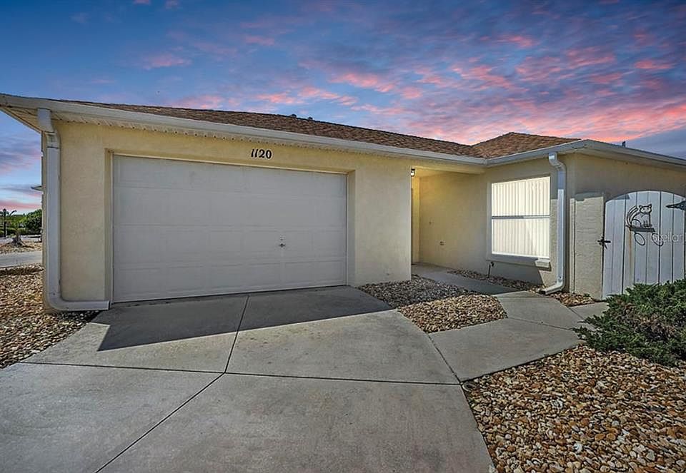 Price Improvement ! Check out the most affordable, newly updated Villa in the Villages of Santiago! This beautiful 2 Bedroom 1 Bathroom 2 Car Garage is perfect! Freshly painted inside with Sherwin Williams Moderne White and looks incredible! The open floor plan has a HUGE Living Room/Dining Room/Den Combo. The kitchen has newly done epoxy countertops, and stainless steel appliances! Natural Gas Oven, Dryer, Water Heater and A/C! Roof was just replaced in November of 2022! Fully fenced yard for privacy! The lot was cleared for easy maintenance with plenty of concrete patios for setting up your Oasis and relaxing in the Florida Sun! Bond is Fully Paid, NO HOA, and extremely low CDD!! Get $2,500 towards closing costs with use of our Preferred Lender! Not ready to buy just yet ? This home qualifies for a Lease Program with Home Partners of America for under $2,000 a month! Call today!!