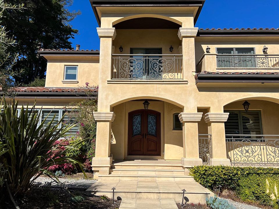 Lovely custom-built 5 bed/4 full and 2 half bath Mediterranean home in sought-after Hillsborough. Behind beautifully detailed wrought iron fencing and gates is the professionally landscaped garden setting the stage for this fabulous home. Spacious and light-filled rooms with custom details like tray ceilings, rich base and crown molding, lustrous hardwood flooring awaits. Plenty of wow factors starting with the chef's kitchen with professional appliances, large center island and an informal dining area, formal living and dining rooms, 2 family rooms, 2 master suites (one on 1st floor) with custom walk-in closets, office with built-ins, luxurious bathrooms, garage parking for 4 cars and much, much more! the backyard landscaping is idyllic with a lush green lawn, a variety of blossomed plants and citrus trees, and a observation deck for enjoying the views. Close to Vista Park and award-winning Hillsborough schools.