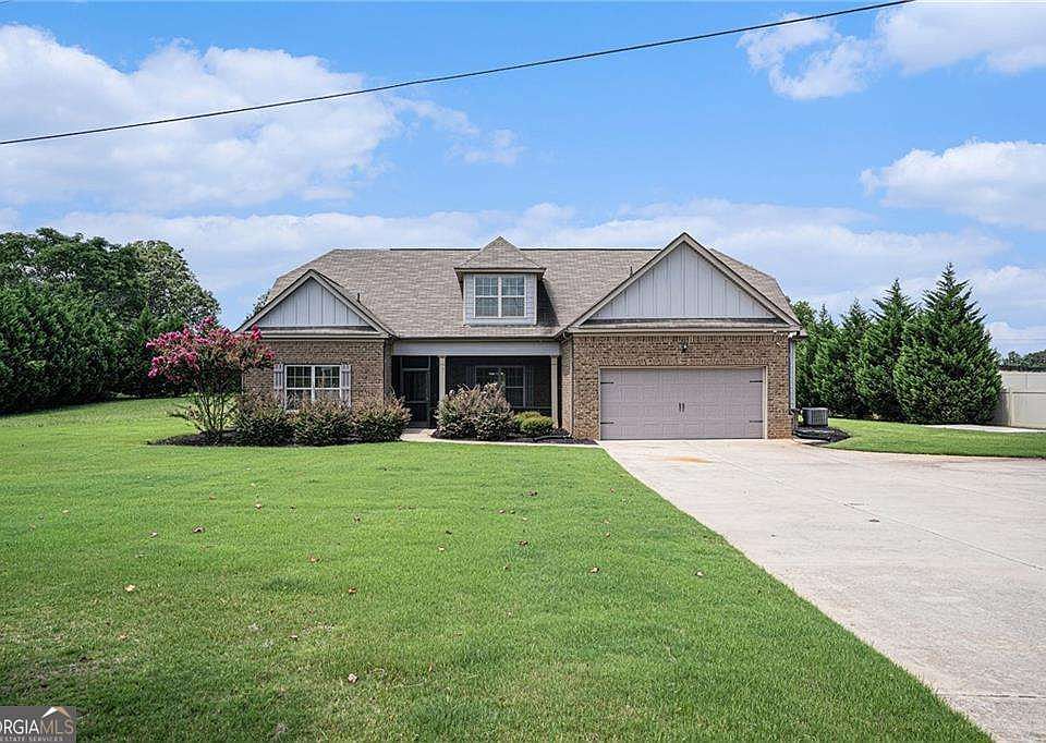 Nestled in the highly sought-after Ola school district of Henry County, this stunning WHITFIELD plan home delivers the perfect blend of modern style, generous space, and everyday functionality. Set on a level 1+ acre lot with no HOA and only seven homes in the community, you'll enjoy a rare combination of privacy and convenience. This Craftsman-inspired 5-bedroom, 3-bath brick-and-frame home is 100% move-in ready, featuring vaulted and trey ceilings, beautiful architectural details, hardwood and carpet flooring, and a bright open layout. The chef's kitchen includes granite countertops, contemporary finishes, and open views to the expansive living and dining areas-perfect for everyday living and entertaining. Three bedrooms, including the oversized Primary suite, are located on the main level. Upstairs offers two additional bedrooms plus a large flex room ideal for a media space, playroom, office, or private guest retreat. Relax on the covered front porch, enjoy quick access to I-20, and take advantage of nearby shopping, dining, and local amenities. All-electric and packed with thoughtful upgrades, this home offers exceptional value and comfort. This property also includes a rare Assumable VA loan opportunity for qualified buyers-an incredible chance to secure a potentially lower interest rate. Make this beautifully maintained home yours today.