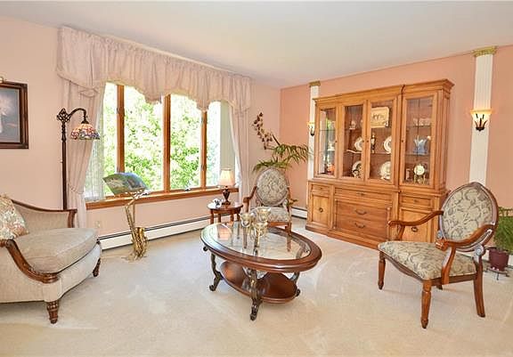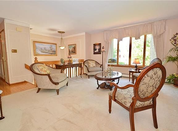 Immaculate bilevel set in pristinely landscaped lot. Kitchen has Corian counters (with seamless sink); granite island with seating and built-in illuminated display cabinet. Sunroom off of dining area overlooks the stunning back yard. Elegant architectural details run throughout the home. Fully tiled 1st floor bathroom has double vanity with quartz counter; tiled shower/tub with glass doors. Master bedroom has two large closets with organizing systems and private access to the bathroom. Spend cool days in the family room warming yourself before the brick hearth fireplace, with efficient wood burning insert. Or, retreat to the entertainment area with built in bookshelves and plasma TV. Gorgeous property features stone pathways leading to secluded seating areas and picturesque havens. Enjoy quiet days relaxing on the shaded patio with a view of the fish pond. Oversized two car garage has plenty of room for your vehicles alongside the maintenance equipment, included with the home.