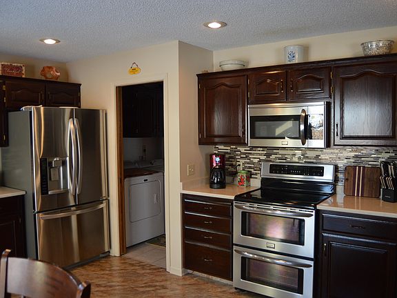 - Kitchen Features: Custom Cabinets, Pantry, Vent Fan, Solid Surface Cntr, Double Oven, Built-in Oven