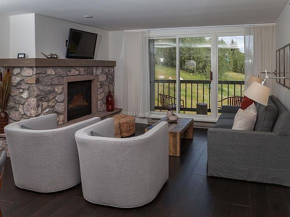 Welcome to the perfect ski condo on the slopes with fabulous views of the mountain and golf course below, a private setting, and meticulously remodeled. Features beautiful wide plank wood floors, a custom barnwood wall in master bedroom, Caesarstone countertops, Carrara marble mosaic backsplash, modern porcelain tiles and Grohe fixtures in baths, and thoughtful lighting. The building has recently updated interiors throughout including new ski lockers. Walk out the door and hop on the chair!