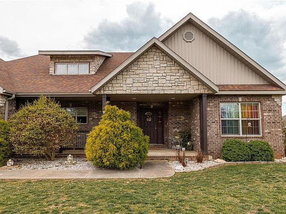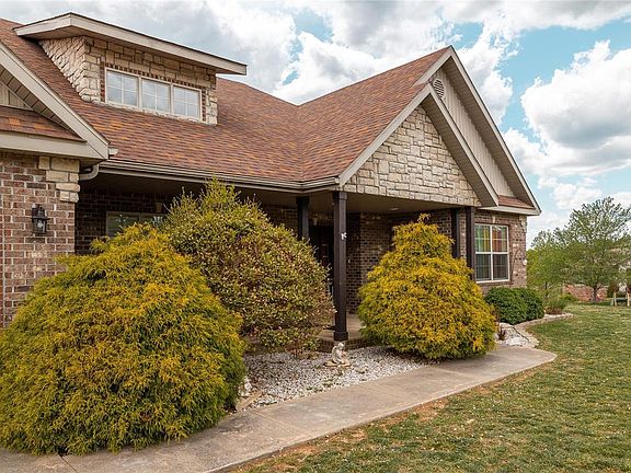 This is a must see! This 3bed, 2.5bath, 3 car garage home in Ozark boasts stone and brick façade. This exceptionally clean and open home is move in ready with open living/dining room area and beautiful kitchen with lots of cabinet space. New hardwood floors in bedrooms, hallways and living room and new roof that was put on in 2017. The front has a covered porch and back has a covered patio to enjoy. The third garage has a John Deere room on the backside as well as a family/safe room. The third garage also features a half bathroom. The back & side yard have a privacy fence that was put in a few years ago. You are just minutes away from shopping and Hwy 65 for a quick trip to Springfield.