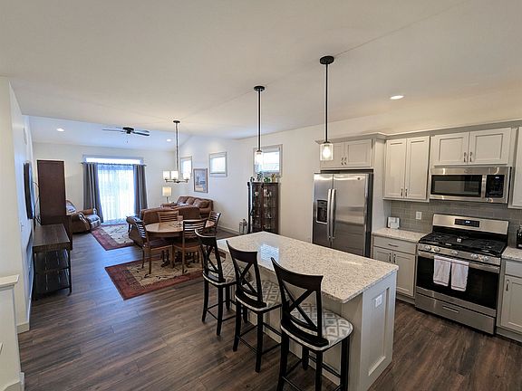 - Breakfast Bar, Ceiling-9+, Ceiling Fan(s), Walk-In Closet(s), Countertops-Solid Surf, Eat-in Kitchen, Kitchen Island, Open Floorplan, Main Level Bedroom Suite