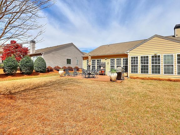 Location, Location,Location! Popular Bluffton Cottage in the Pinnacle section of Del Webb. Easy Walk to the Lake, Lakeside Pavilion, Docks and several wooded Trails. Many extra's include Hardwoods and Ceiling fans throughout , Crown Molding, Trey Ceilings , Granite counter-tops, underground sprinkler system, added Stairs to attic storage in garage. Open Concept Eat-In Kitchen with light cabinets, tons of Storage, Breakfast Bar, All appliances included (new Dishwasher and Refrigerator ) Designer fireplace, formal Dining area, bright airy Sunroom. Master Bedroom Suite with big walk in closet, Soaker Tub, decorative leaded window, separate shower, Double sink vanity. Guest Bedroom with shared Bathroom and 3rd Bedroom which can be used as an office. Private landscaped and irrigated yard that backs up to the woods for privacy. Extended Patio, New carpeting in MB & 2nd Bedroom. New HVAC system. All the Del Webb amenities and lawn care for one low HOA fee.