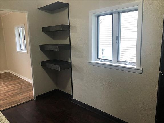 Two Bedroom Ranch Home In Port Vue, Nicely Updated With One Full Bath, Newer Windows, Galley Kitchen Equipped With Gas Cooking, Rustic Open Shelving Pantry, Living Room Area Has Laminated Flooring, 1st Floor Family Room Addition Is Tastefully Done, Exposed Brick Wall, Skylights, and Door Leading Out To Backyard, Two Tiered Yard With Shed, One Level Living Including Laundry Off Kitchen Has Pull Down Stairs With Full Attic Space Above: Great For Storage Or Additional Spaces !