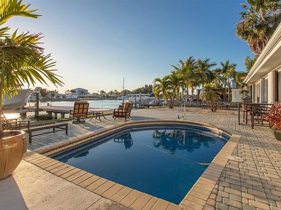 AWC - Taking Backup Offers BOATER'S PARADISE!!! Wide, deep canal leads directly to John's Pass with easy access to the Intracoastal and the Gulf of Mexico. This 3 bedroom/ 2 bath home features a open floor plan with views of the water from the moment you enter. Large Master Bedroom Suite features its own sitting room with view of the water and full bath, guest room also has its own sitting area and view of the water. Built in 2007 the extra wide 12x50 trek decking dock, has water, electric and a 16,000 lb boat lift. Inviting paver deck around a jetted lap pool with waterfall , is perfect for easy entertaining. This home has been well maintained, newer roof, hurricane shutters, sprinkler system and a oversized 2 car garage. Tropical landscaping , beautiful courtyard and pavers give this home welcoming curb appeal. This home is move in ready. Only 1 mile to the white sands of the Gulf of Mexico, you can truly "Live the Vacation Lifestyle" The owner is a real estate agent.