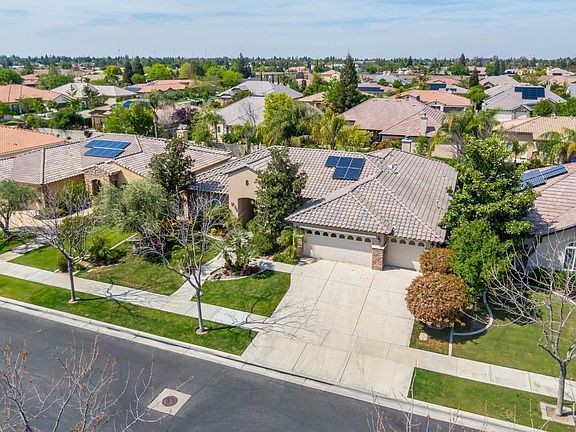 Located in the prestigious Brighton Estates this split-wing property greets you with lush landscaping leading to a grand entrance through double doors. Inside, the formal living area flows into a dining room highlighted by a beautiful chandelier. The great room offers a cozy stone fireplace, breakfast nook, and spacious chef's kitchen equipped with granite countertops, ample cabinetry, newer dual ovens, newer microwave, island, breakfast bar, and pantry. The nearby powder bath and laundry room with sink enhance functionality. The primary suite is a serene retreat with backyard views, direct access to the yard, large walk-in closet, and spa-like bathroom featuring separate tiled shower, garden tub, and dual split vanities. Three additional bedrooms and full guest bathroom with outdoor access ensure comfort for all. The backyard oasis boasts a covered patio, inground pool and spa with waterfall, and block wall. Modern conveniences include OWNED solar, newer HVAC system and central vac.