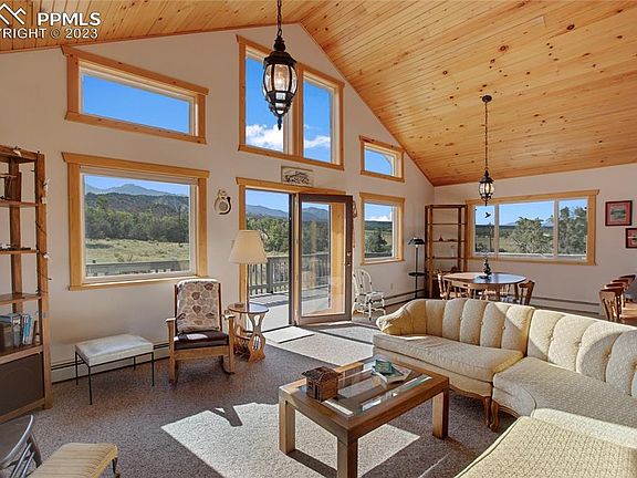 This enchanting mountain retreat is offered for the first time ever in a coveted location, minutes from Salida, and across from the Arkansas River. This 3-bedroom, 2-1/2 bath home sits on almost 13 acres. Tabeguache Creek creates the northern boundary of the property. A glass vestibule entrance to the first level opens to a tiled sitting area, with floor-to-ceiling windows and knotty pine walls. This level also has a bedroom with attached full bath, and laundry closet. A short flight of stairs brings you to the main level great room with stunning views of the Collegiates, an open kitchen, spacious breakfast bar, dining area with views of the Arkansas River, large windows with fabulous natural light, tongue & groove vaulted ceilings, a cozy gas stove and convenient half-bath. French doors lead to the large deck to savor unobstructed views of the Collegiate Range, Buffalo Peaks and Sangre de Cristos. Watch gorgeous sunrises and sunsets on Mt. Shavano. Relax and enjoy stargazing, meteor showers, bird watching, and cool breezes. Two more bedrooms and a full bath are privately located on the upper level. Every room has a view. The oversized 2-car garage has great storage and a workbench area. Domestic well (Permit #152133-A) allows water use for ordinary household purposes, stock watering, and irrigation of up to one acre of lawn and garden. Bring the horses and livestock. Additional deeded water rights include a 20% interest in the Spaulding Ditch No 42 water right and the Spaulding Ditch Enlargement water right from Tabeguache Creek that could be used for irrigation of pasture. The county-maintained road off Hwy 285 is within 30 minutes of Monarch Ski Mountain, Buena Vista, and a dozen 14ers. Minutes to rafting and fishing in Browns Canyon National Monument and Arkansas Headwaters Rec. Area--Big Bend. Dog Friendly Salida is a mecca for art, culture, entertainment, theatre, dining, and outdoor recreation. Welcome to a nature-lovers paradise!