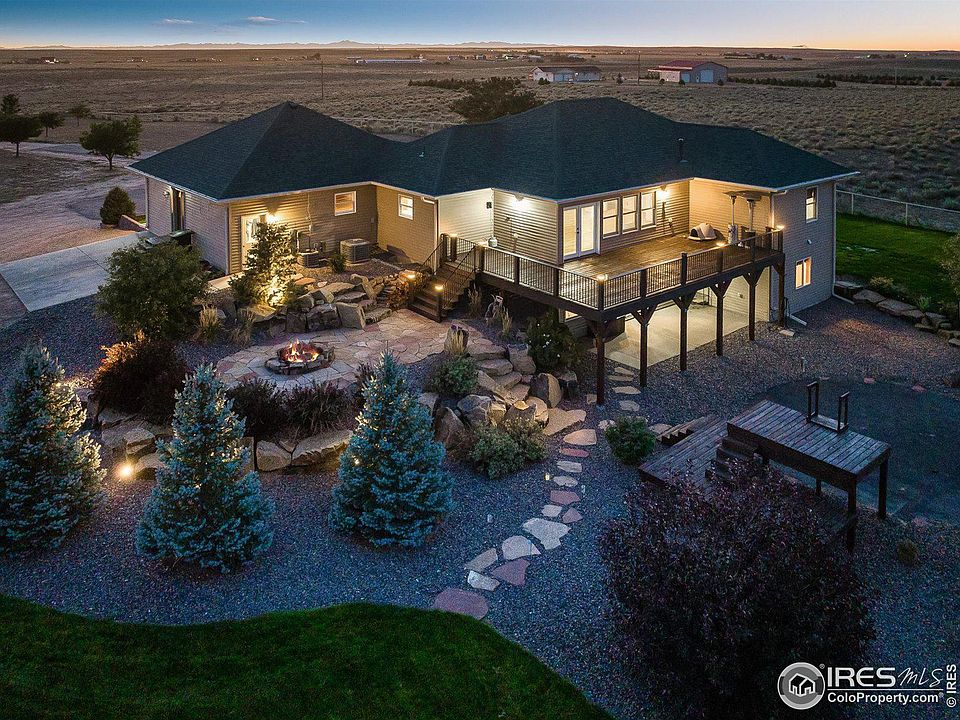 Remarkable homestead on 80 acres with stunning view of the Rocky Mountains! A refreshing break from city life with no HOA's. Close enough to town but far enough away to seclude yourself from the hustle and bustle on this open space property. Well maintained home with new roof, updated heating & cooling systems. Turnkey home with open floor plan. Vaulted and tray ceilings with great lighting and wired for fiber optics. Large deck to enjoy hosting parties including a huge fire pit and patio nestled into the pine trees. Finished walk-out basement with great room and lots of natural light. Amazing landscaping surrounds the home with a rocky mountain feel including pine trees, massive boulders & multiple garden and rose beds with drip lines. Bring your toys, animals, RV, boat and more! This property has it all including a shop (220W available) with concrete floor, room for tools, toys, vehicle etc. Spacious barn with running water, heated stock tanks and 3 horse stalls. Multiple livestock corrals within the fenced in property. Lots can be divided if needed. One hour from Denver. Don't miss this opportunity to own this rare turnkey piece of real estate.