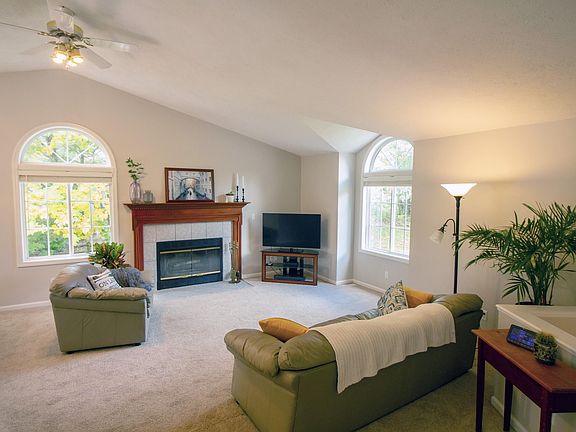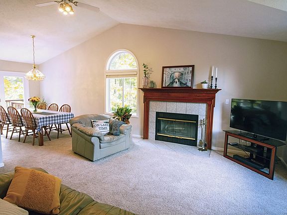 Walking into this warm, spacious, light-filled home, attractive angles and planes add visual interest as you enter the main living area. Sunlight floods into this space from large windows on three sides. A vaulted ceiling adds to the spacious, airy feel of the large, open living and dining area. The heart of this home is a bright, modern kitchen that includes ample cabinets and a sunny breakfast nook for sipping your morning coffee as you gaze out over the serenity of Crawford Lake or at wildlife in your backyard.