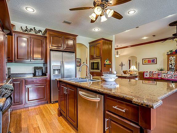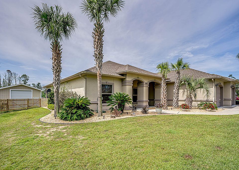 CURRENTLY UNDER CONTRACT, SELLER ACCEPTING BACKUP OFFERS. An exquisite custom home on 1.39 acres of tranquil property with a guest house and a 24x40 RV garage. Main house includes 3 bedrooms, 2 baths, 2107 sqft., and 2 car garage. The guest house/ rental is a 1 bedroom plus a bonus room, 1200sqft, 2 car garage, and partial fenced patio and yard area. The main house has gorgeous custom finishes with bull-nose corners, bamboo floors in living areas, kitchen, and bedrooms. All windows in this home are impact-resistant windows and exterior walls are 6'' thick making this home sound and energy-efficient. The kitchen is the heart of the home with custom-built cabinets including pull out spice racks, quartz counter tops, a custom mosaic tile back splash, top of the line range induction cook top