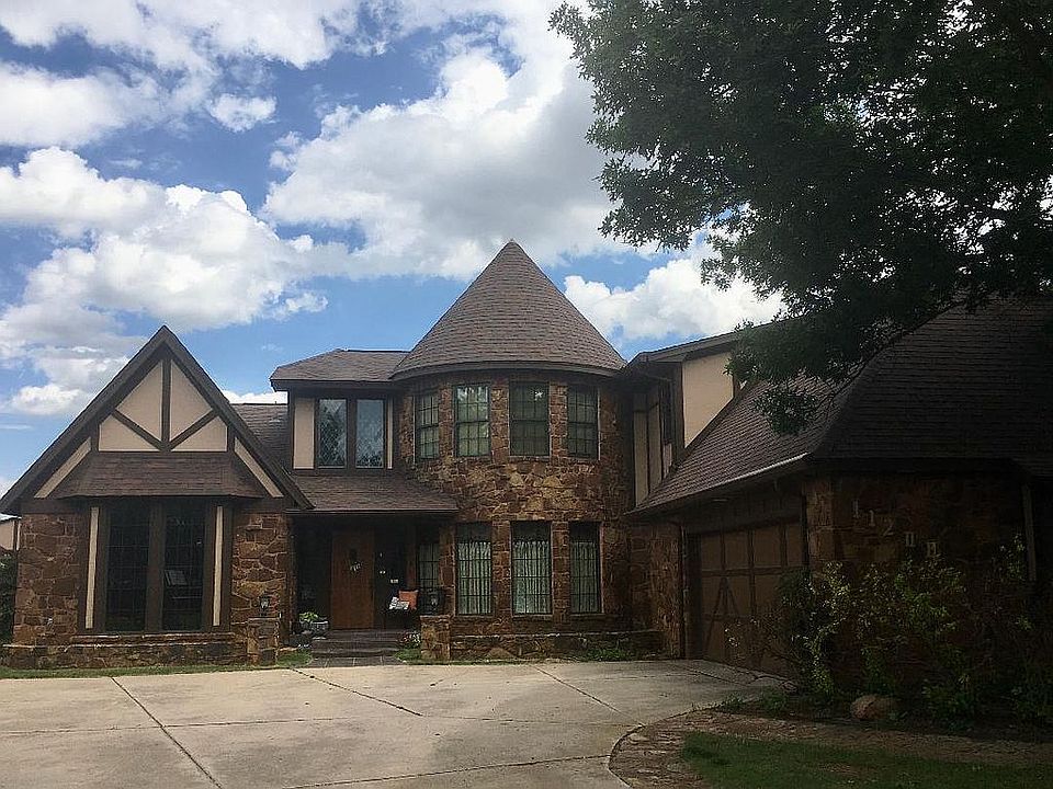 Beautiful lake front property in Blue Stem. You will fall in love with the backyard with a covered back patio, swimming pool, hot tub and lake access. You can enjoy paddle boarding, kayaking or just sitting on the back patio. This home is an entertainers dream with a large living space with a bar area. With over 4600 square foot the home is reminiscent of an old English castle and resort. Large amounts of brown rock frame the house while flagstone sidewalks, pool features and fire pit create a park like setting in the huge backyard with 189 feet of lake front. located on a large section of the spring fed Blue Stem Lake. The 3 kayak ramp and floating dock make the beautiful lake. 249 sq ft for an office and movie room upstairs that was added on by the seller is not included in the county assessor sq ft