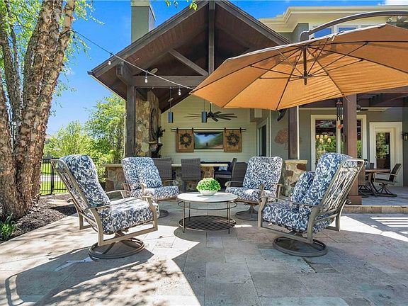 Nestled within the prestigious Mills Farm community, this exquisite former model by Starr Homes showcases luxury and thoughtful updates throughout. With a sprawling layout featuring 6 bedrooms, this home caters to both lavish entertaining and serene living. The beautifully updated chef's kitchen blends functionality and beauty with its mix of wood and creamy painted cabinets, glass-front displays, and a large walk-in pantry equipped with open shelving and dedicated space for small appliances. The oversized island and eat-in space are perfect for casual dining, while the adjacent covered patio, complete with an outdoor kitchen, bar, fireplace, and TV, offers an idyllic setting for entertaining or relaxing in the lushly landscaped fenced yard. The main floor also hosts a large great room, and an office/study that boasts an abundance of built-in cabinetry and bookshelves. The formal dining room with glass doors, currently used as a music room, can adapt to your lifestyle needs. The main floor is complete with a practical mud room and a convenient half bath. Upstairs, you’ll find the primary suite with a spa-like ensuite bath and vast closet, seamlessly connected to the large laundry room equipped with a sink and additional storage. Two secondary bedrooms share a jack-and-jill bath, and another bedroom enjoys the privacy of its own bath, accommodating family and guests alike. The finished lower level offers a walk-out/walk-up design, featuring a glass-walled wine room and a pub-style bar that opens to a cozy great room with fireplace. Two additional bedrooms connected by a jack-and-jill bath, along with an extra flex room beneath the suspended garage (perfect as a workout room) complete this exceptional home. Mills Farm is a community known for its unparalleled amenities. With three swimming pools, a clubhouse that includes a fitness center, tennis courts, sand volleyball court, and play area, the neighborhood caters to a wide array of interests and activities.