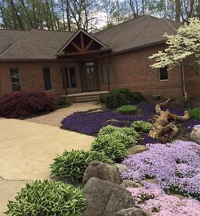 Lovely brick & timber ranch home situated on a wooded and very private 5.0 acre lot. 3 bedroom, open foyer & great room. Oversized 1st fl. laundry, large kitchen w/ solid surface countertops & breakfast nook overlooking woods & koi pond. Amazing views out of every window. Long winding paved driveway w/ gate. 7 car heated garage.