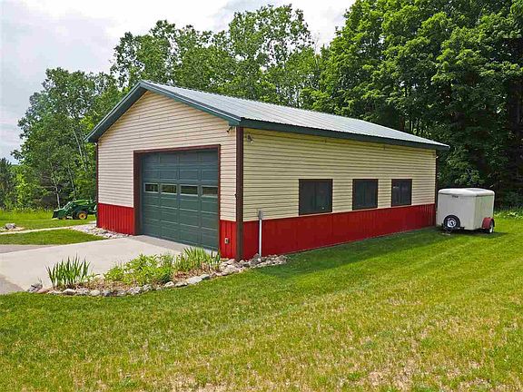 Stunning log sided home situated in the middle of 20 rolling acres. The 4 bedroom, 3 bath cabin features country views, natural landscaping in a tranquil setting. Main floor master with plenty of room for your family and guest. Lower level offers a guest suite with a private bathroom and family room. The 4+/- garage is insulated, pour concrete floors, knotty pine finishes and a work shop. Garage is ready for a furnace to offer a year round heated option. Home, garage and property is in immaculate condition and ready for you...