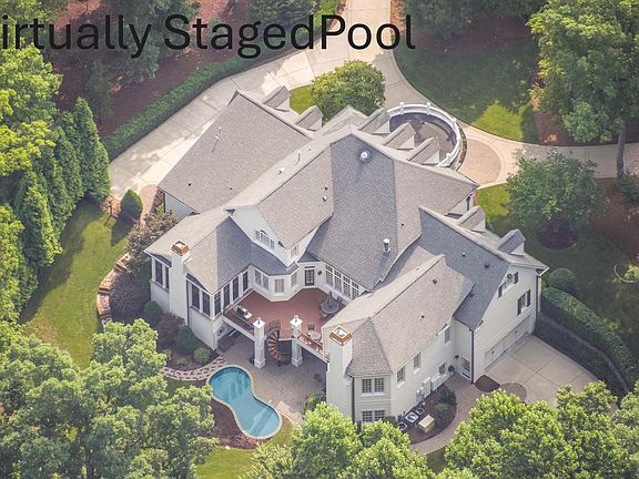 Rebuilding this extraordinary custom estate today would exceed $5M—making it a rare opportunity to own one of the most architecturally detailed and thoughtfully designed homes in North Raleigh's exclusive gated community of Linville. Timeless luxury meets modern convenience on 1.40 manicured acres in this sought-after neighborhood. Originally crafted by a premier builder and real estate professional for personal use, every detail reflects exceptional craftsmanship. The show-stopping gourmet kitchen features hand-detailed custom cabinetry, oversized walk-in pantry, butler's pantry, large island with vegetable sink, and top-tier Thermador appliances: 6-burner gas range, double ovens, warming drawer, built-in refrigerator, and commercial-grade exhaust. Open-concept living flows into a sun-drenched family room with stone fireplace and remote-controlled shades. French doors lead to a vaulted three-season EZE-Breeze room with its own stone fireplace—perfect for year-round entertaining. Updates include a new roof (2022), elevator, upgraded fixtures, tankless water heater, new modern powder room, generator , Tesla charging station, mature lush landscaping, theater equipment, and spray foam(see Docs for full list of updates). The private backyard features a Eze breeze, vaulted three season screen porch, grilling deck with gas line, and space for a future pool. Perfect for multigenerational living, the main-level owner's retreat spans 1,200+ sq. ft. and offers a Ritz-Carlton-style suite with vaulted sitting area, fireplace, private deck access, and a custom closet with granite-topped island. The spa-like bath boasts dual vanities, wrap-around mirror, and dual-head walk-in shower. The study is an executive-level retreat with custom wood doors, coffered ceiling, gas fireplace, and built-in cabinetry. A formal dining room showcases intricate wainscoting, coffered ceiling, and designer lighting. Upstairs includes a second master suite, two additional bedrooms, and a spacious bonus/rec room. The lower level features a tri-level theater with 135'' screen, acoustic paneling, custom recliners, in-law suite, and a full bar with cherry cabinetry, fridge, dishwasher, and wine storage. A walk-up attic with spray foam insulation offers amazing storage or expansion potential. Grand curb appeal with circular drive, stately columns, fenced yard, irrigation, and landscape lighting. Community amenities include walking trails, a pool, tennis courts, and clubhouse—elevating the lifestyle of this truly one-of-a-kind luxury home.