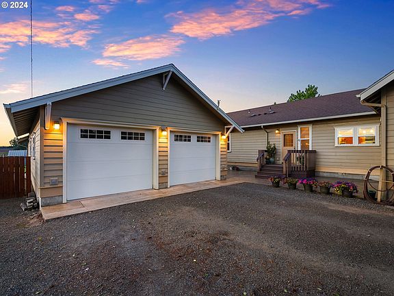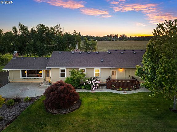 Welcome to your homestead paradise, where every detail has been meticulously crafted to offer the perfect blend of charm and modern convenience. This 1.55-acre property is more than just a home, it's a lifestyle opportunity. When you arrive at the property you'll be greeted by lush green fields, vibrant gardens, and a serene surrounding landscape of farmland, sprawling fields, and the picturesque Molalla Hills. The beautifully updated home, originally built in 1925, has high ceilings and was thoughtfully modernized while preserving its timeless appeal. Unique touches like repurposed vintage doors, knobs, and light fixtures add to the charm of the home. The spacious kitchen, complete with an eat-in island, is perfect for gatherings and entertaining. With three generous bedrooms and a den that can serve as a fourth bedroom, there?s ample space for everyone. The primary suite is a luxurious retreat, featuring a walk-in closet, private deck, and a spa-like bathroom with heated tile floors and a clawfoot soaking tub. Comfort and efficiency are paramount, with a new multi-zoned heat pump and air conditioning ensuring a perfect climate year-round. Large windows are strategically placed to offer breathtaking views of the rural landscape, bringing the beauty of nature indoors. The property features an oversized two-car garage with an attached workshop and office space, a barn, fenced pasture, and an irrigation system for the exquisite gardens and landscaping. The property is located just a short drive from Canby's many amenities with convenient access to Wilsonville, Salem, Portland, and other major metro cities. Don't miss the opportunity to make this turnkey homestead your own!