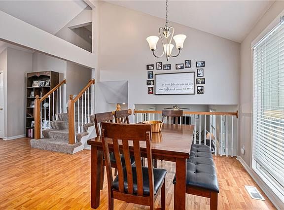Charming 3 bedroom 2.5 bath home with vaulted ceilings, hearth room with fireplace and an open eat in kitchen that has plenty of cabinets, plus stainless steel appliances. Walk out from the kitchen onto the deck or lower level patio to a large, fenced in backyard. Enjoy the cozy lower level family room plus an additional lower level finished area that is perfect for a home office, workout space or more living space! Both the water heater and HVAC are new within the last year!
