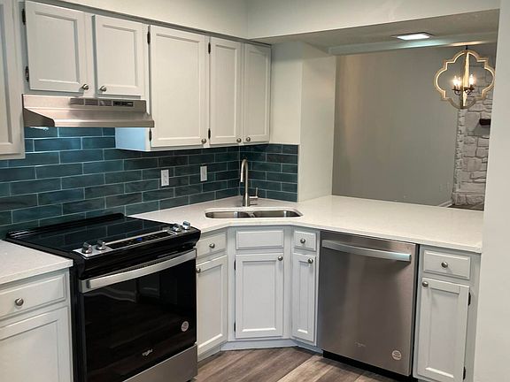 One story end unit townhome with two bedrooms, two bathrooms and fenced back and side yard areas. Roof replaced in 2022, new windows and front door, new stainless steel appliances, new water heater, quartz counters, luxury vinyl flooring, wood burning fireplace, attached storage room. Large living/dining area and eat-in kitchen. Great location convenient to shopping and major roadways.