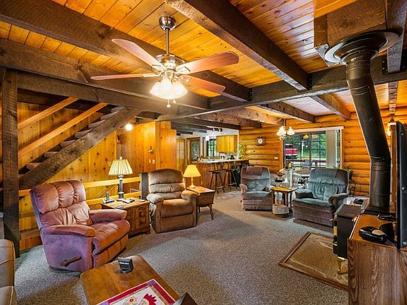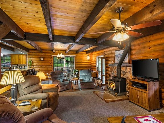 Pristine & secluded custom built log home located on 9.66 treed acres. This beautiful home has it all! The spacious kitchen opens into the dining & living rooms. Plenty of space for the family or guests with 5 bedrooms (2 non-egress) & the extra family room. 2 car detached garage with lean to plus a 24x30 shop just perfect for your projects & parking the RV! And of course, we must not forget to mention the 22K generator that runs the entire home during a power outage!